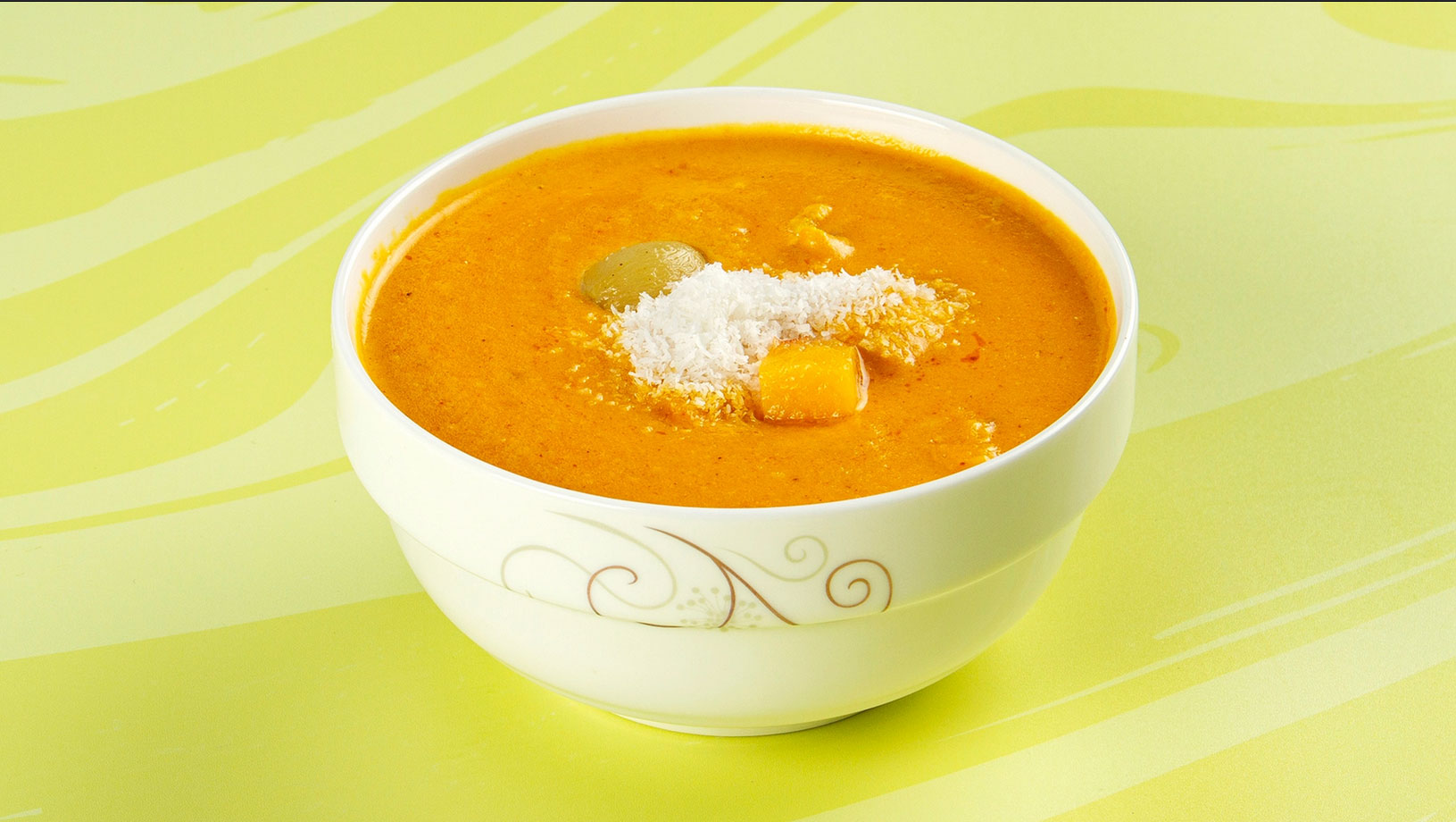Κοτόπουλο μαγειρεμένο σε κρεμώδη σάλτσα αμυγδάλων & κάσιους. Συνοδεύεται από ρύζι basmati